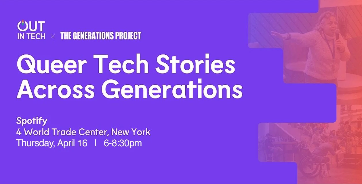 Join us for Queer Tech Stories Across Generations, a one-night-only storytelling event presented by Out in Tech in collaboration with The Generations Project